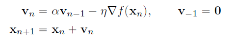 - gradient가 좀 줄어들고 계곡에 갇힌다면 높은 모멘텀을 사용함 (e.g. 0.9, 0.95 0.99)