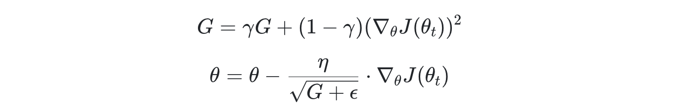 - *Adagrad 옵티마이저에서 기울기의 누적합이 무한대로 커지게되면 학습이 정체되는 현상이 발생하는데, 이를 방지하고자 제안됨